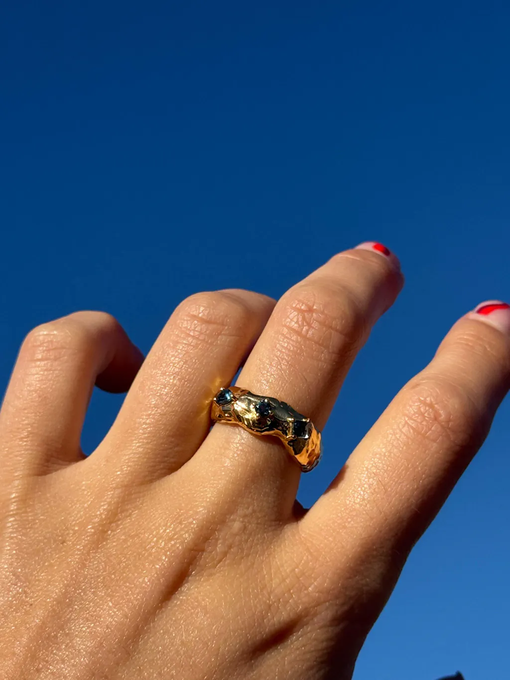 From the Nami collection, three pieces of the ocean wrapped around your finger, asymmetrical the way the ocean never repeats itself, catching light with every move.